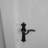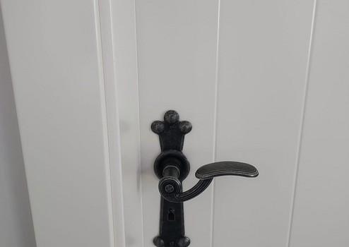 Weiße und höhere Zimmertüren mit breiten Rahmen und verzierten Drückergarnituren unterstreichen den besonderen Charme.
