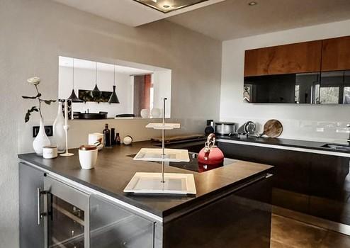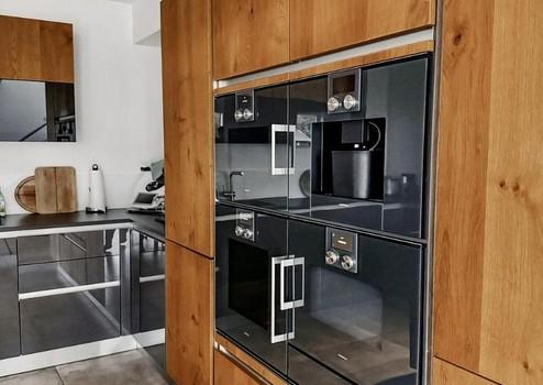 Die moderne und geschmackvolle Küche aus 2016 lässt das Herz jeden Hobbykochs höherschlagen: Gaggenaugeräte wie Espressovollautomat, Mikrobackofen, Backofen, Wärmeschublade, Geschirrspüler und Dampfgarer kombiniert mit einem 80 cm Flex-Induktionskochfeld sowie einem Liebherr Wein-Klimaschrank.