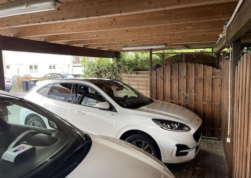 Das Haus steht auf einem ruhigen Eckgrundstück von 309 m² und bietet zahlreiche Außenflächen. Zum Haus gehört ein großer Carport mit zwei Stellplätzen sowie ein abschließbarer, überdachter Nebenraum, der ideal für Fahrräder, Motorräder oder Gartengeräte geeignet ist.