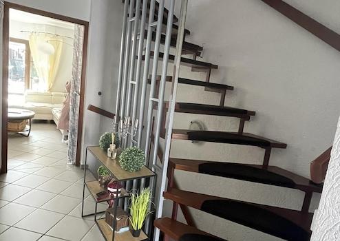 Mit 129 m² Wohnfläche verteilt sich das Haus großzügig auf mehrere Etagen und bietet moderne Ausstattungsdetails wie Fliesen- und Laminatböden, ein Vollbad mit Dusche und Badewanne sowie ein separates Gäste-WC. Die Klimaanlage sorgt auch an heißen Sommertagen für angenehmes Raumklima. Das Mansarddach bietet zudem viel Charme und zusätzliches Raumangebot im Dachgeschoss.