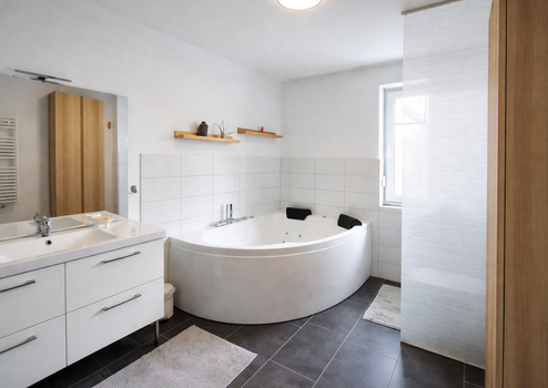 • 2 Tageslichtbäder im Erdgeschoss (1 x mit Eck-Whirlpoolbadewanne; 1 x mit Dusche)