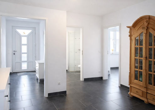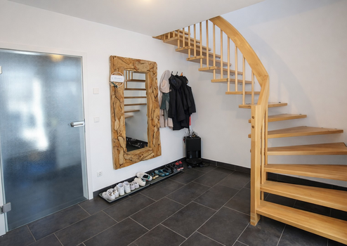 • Hauseingangsbereich mit Treppenaufgang (Buchenholztreppe)