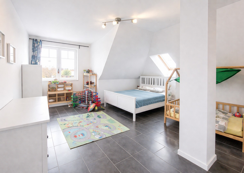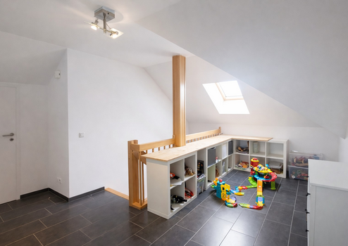 Zusätzlichen Stauraum bieten der gedämmte Spitzboden sowie die Abseiten im Obergeschoss.