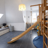 Das Obergeschoss überzeugt mit einer offenen Galerie, zwei nahezu gleich großen Zimmern mit großzügiger Gaube in Süd-West-Ausrichtung sowie einem weiteren Tageslichtbad mit Dusche, wodurch auch eine Nutzung als separate Wohneinheit denkbar ist.