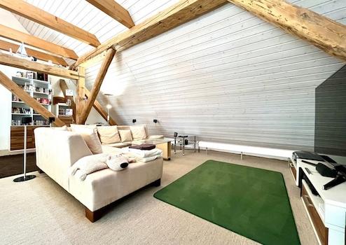 große „Lohdeel“ mit Zugang zu den kleinen Wohnungen mit Sauna für 2 Personen und Ruhebereich (Begriff „Lohdeel“: auch „Tenne“ genannt, ist die Fläche, auf der früher das Getreide gedroschen wurde)