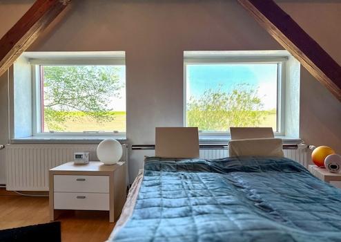 Dachgeschoss: großer Flur mit Dartsbereich, Gästezimmer, Gäste-WC, sehr großer Wohnbereich mit Kachelofen und Zugang zu Bürobereich im Spitzboden, Schlafzimmer mit Deichblick, durch eine Brücke über die "Lohdeel" mit dem Wohnbereich verbunden