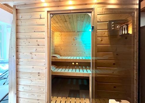 Sauna mit gemütlichem Ruhebereich in der Lohdeel, für alle Wohneinheiten zugänglich
