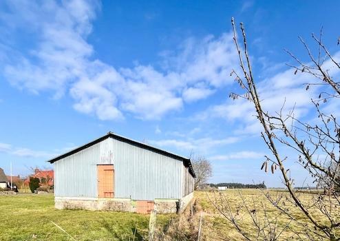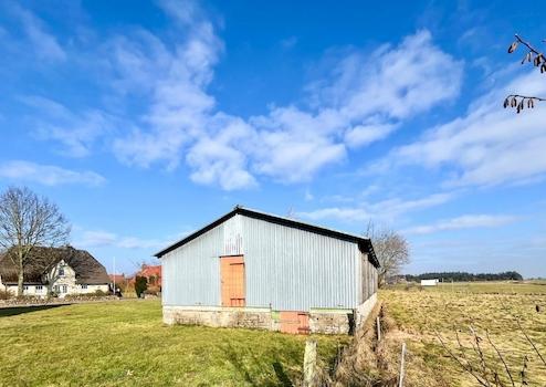 Das Grundstück ist bebaut mit einem großen Schuppen.