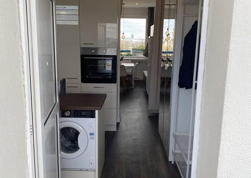Schönes, helles 1-Zimmer-Apartment mit Balkon und Keller, voll möbliert mit einer neuen Einbauküche und einem neuen Badezimmer mit Dusche. Waschmaschine, Spülmaschine, Backofen... alles vorhanden, was man zum Leben braucht.