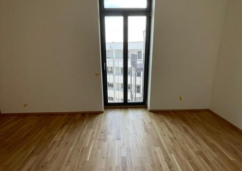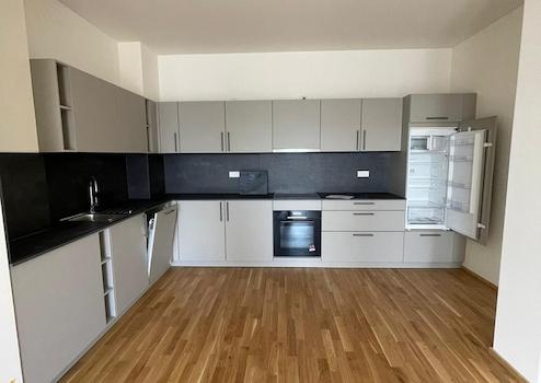 Der edle Parkettboden verleiht der Wohnung eine warme, elegante Atmosphäre. Das offene Wohnkonzept mit vollausgestatteter Designküche schafft einen harmonischen und stilvollen Wohnbereich. Das moderne Badezimmer mit ebenerdiger Dusche und Badewanne runden das Gesamtbild ab. Neben der Eingangstür ist eine kleine Abstellkammer mit einem separaten Waschmaschinenanschluss.