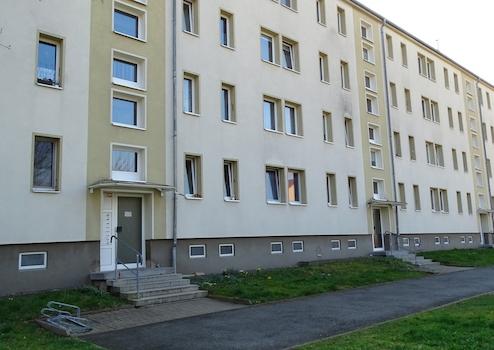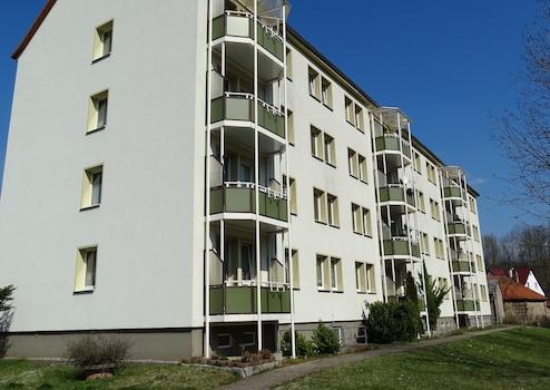 im nördlichen Plattenbaugebiet ggü. Kaufhalle und Ärztehaus gelegen, überwiegend sanierter Bestand im Wohngebiet,