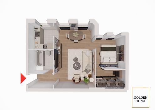 Bei den abgebildeten Grafiken handelt es sich teilweise um maßstabsgetreue Beispielbilder, welche Ihnen die Immobilie in neu möbliertem Zustand präsentieren sollen.