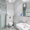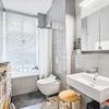 Das stilvolle Vollbad mit separater Dusche und Badewanne sorgt für Entspannung auf höchstem Niveau, ergänzt durch ein elegantes Gäste-WC. Die maßgefertigte Einbauküche mit Bosch-Geräten lädt zu kulinarischen Erlebnissen ein.