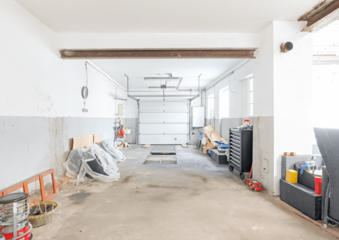 Zusätzlich verfügt das Haus über eine massive Garage mit angrenzender Halle (ca. 100 m²) im hinteren Bereich des Grundstücks. Diese Fläche eignet sich hervorragend zur Vermietung, als Lager für Handwerksbetriebe oder als Oldtimer-Unterstellplatz – ein deutlicher Mehrwert für Sie und Ihre Mieter.