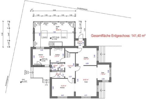 Im Erdgeschoss erreichen Sie über einen traumhaften Flur mit historischem Treppenhaus ein großzügiges Wohn- und Esszimmer, eine Küche mit Siematic-Einbauschränken, ein weiteres Zimmer, Gäste-WC und der Studioanbau mit 1 1/2 angrenzenden Zimmern. Von der Küche gelangt man in den Keller, bestehend aus 4 Räumen plus Flur und Vorratsraum.