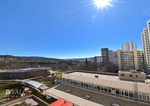 Mit dem Einkaufswagen per Aufzug zur Wohnung: Einkaufsmöglichkeiten direkt nebenan im Leo-Center vorhanden.