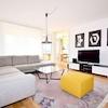 Das Wohnzimmer ist geräumig und bietet Zugang zu einem Balkon, der sich perfekt für entspannte Stunden im Freien eignet. Hier können Kinder sicher spielen, während die Eltern die Aussicht genießen. Die Wände sind in neutralen Tönen gehalten, was eine individuelle Gestaltung ermöglicht.