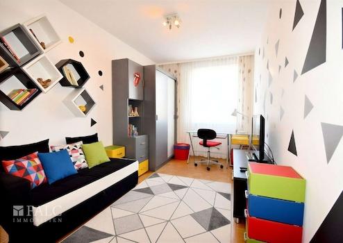 Willkommen in dieser großzügigen Wohnung mit einer Wohnfläche von 107,11 m², die sich ideal für junge Familien eignet. Beim Betreten der Wohnung fällt sofort die helle und freundliche Atmosphäre auf, die durch große Fensterflächen unterstützt wird. Der Wohnbereich ist mit einem hochwertigen Parkettboden ausgestattet, der nicht nur pflegeleicht, sondern auch robust ist, was besonders für Familien mit Kindern von Vorteil ist.