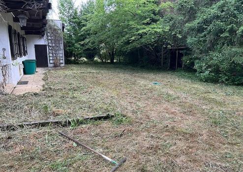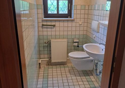 An das Haus angebaut ist eine Garage in Massivbauweise mit 5,5 m Länge und 4 m Breite. Ihr angeschlossen ist ein Geräte- oder Abstellraum für Fahrräder usw. Von dort führt eine Tür in den Garten. Das ca. 1000 m² große Südwest Grundstück ist von einem Holzzaun umgeben. Der Zugang bzw. die Zufahrt zum Gebäude erfolgt über die gepflasterte Einfahrt. Dank einer Rampe am Eingang, sowie eines Treppenlifts in das Obergeschoss, ist das Objekt bereits weitgehend barrierefrei Im Kellergeschoss wurden neben dem Heizungs- und Waschraum vier zusätzliche Kellerräume, mit vielseitigen Nutzungsmöglichkeiten, geschaffen.