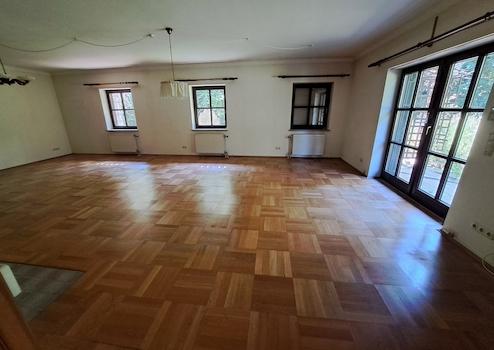 Dieses großzügige und gut geschnittene, mit 7 Zimmern ausgestattete und komplett unterkellerte freistehende Einfamilienhaus steht in einer ruhigen Anliegerstraße unweit des Zentrums der Gemeinde Grünwald (ca. 11.000 Einwohner), im Landkreis München in Bayern. Das 1990 erbaute Haus hat ein Erdgeschoss und ein Obergeschoss mit insgesamt 268m² Wohnfläche. Im Dachgeschoss gibt es eine Ausbaureserve. Zum Haus gehört eine angebaute Garage, ein Stellplatz, ein riesiger Garten, eine großzügige nach Südwesten ausgerichtete Terrasse und ein entlang der Südost- und Südwestfassade verlaufender überdachter Balkon mit Blick ins Grüne.