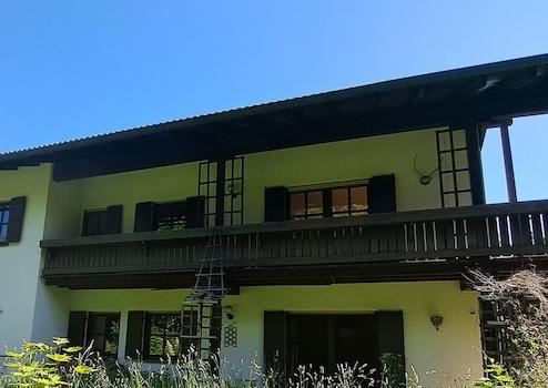 Das im Landhaus-Stil errichtete Einfamilienhaus mit ca. 268 m² Wohnfläche befindet sich in einem beliebten Viertel Grünwalds. Es wurde ca. 1990 in Massivbauweise erbaut und liegt in einer ruhigen Anliegerstraße. Die Trambahnlinie 25 verläuft an der südwestlichen Grundstücksgrenze, hinter dem Haus.