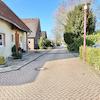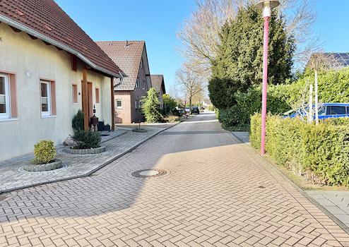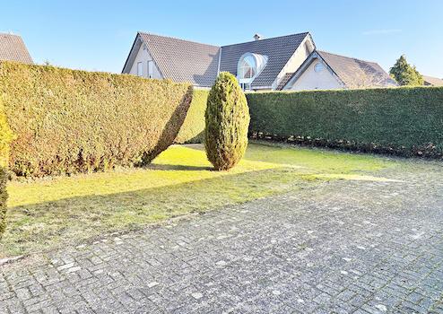 Die Zufahrt für das dahinter liegen Haus führt entlang der linken Grundstücksgrenze und ist in der Breite von drei Metern über ein eingetragenes Wegerecht für den Nachbarn gesichert.