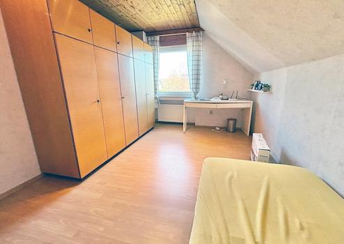 Dachgeschoss: Elternschlafzimmer, Kinderzimmer I, Kinderzimmer II (respektive Büro), Flur (mit Zugang zum Boden), Bad (mit Wanne und Dusche), Abstellraum