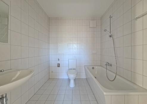 Das geflieste Wannenbad ist geräumig und komfortabel gestaltet – ideal für alle, die gerne baden oder Wert auf ein klassisches Bad legen. Praktisch ist zudem die kleine Abstellkammer direkt am Schlafzimmer, die zusätzlichen Stauraum für Kleidung, Koffer oder Haushaltsgeräte bietet und den Wohnbereich angenehm aufgeräumt wirken lässt.