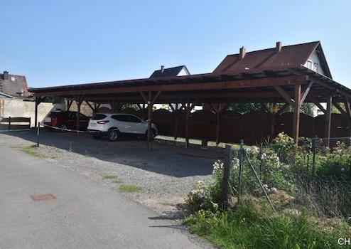 Zum Verkaufsobjekt gehört noch ein weiteres Grundstück genau gegenüber. Hier befindet sich ein großes Carport mit Stellplätzen für 6 Autos (Baujahr 2018) und diverse Stellflächen, welche auch derzeit monatliche Mieteinnahmen erzielen.