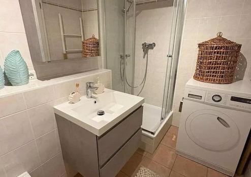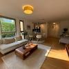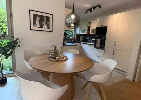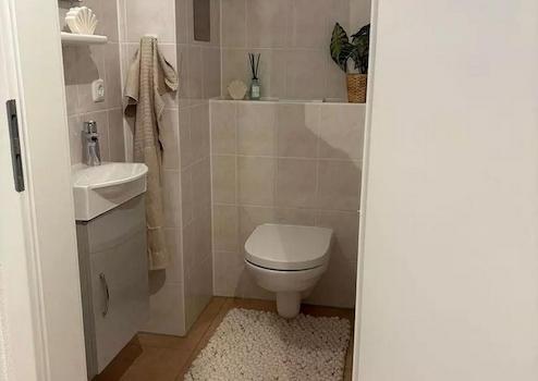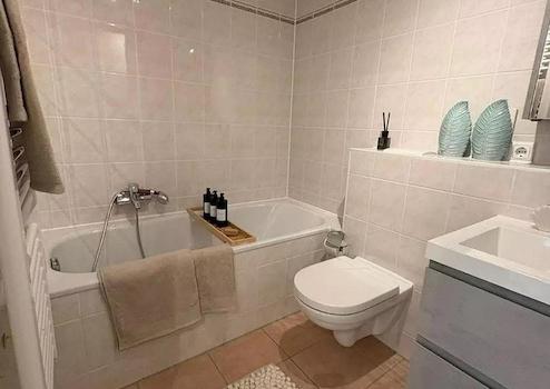 Die offene Einbauküche ist modern und vollständig ausgestattet – ideal für alle, die gern kochen. Das Badezimmer verfügt über Badewanne, Dusche und ein separates Gäste‑WC.