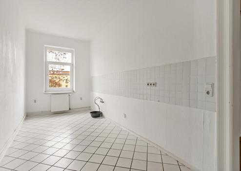 Die Küche ist schlauchartig geschnitten und funktional angelegt, sodass sich der vorhandene Raum effizient nutzen lässt. Das Tageslichtbad ist mit einer Badewanne ausgestattet und bietet dank Fenster eine natürliche Belüftung.