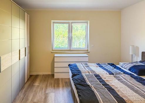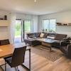 Die Einliegerwohnung verfügt über einen hellen Wohn- und Essbereich mit Küche, zwei Schlafzimmer, ein großzügiges Bad sowie ein Gäste-WC – ebenfalls mit Zugang zur eigenen Terrasse.