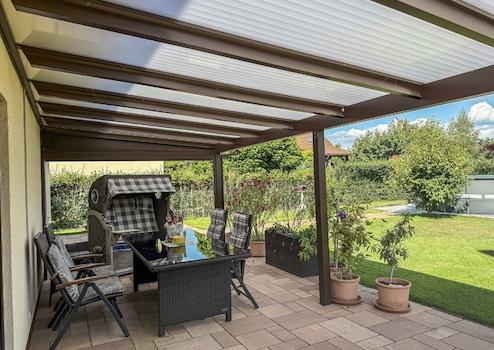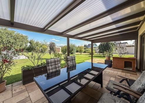 - Direkter Zugang zur überdachten Terrasse mit Gartenblick
