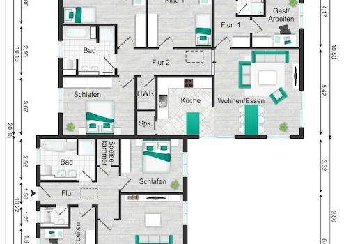 - Optionaler Durchbruch möglich → Nutzung als großes Einfamilienhaus mit 8 Wohnräumen (6 Schlafzimmern)