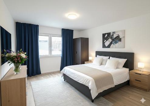 Es handelt sich um maßstabsgetreue Fotos, welche mit KI bearbeitet wurden. So oder ähnlich könnte der Raum mit neuer Ausstattung aussehen.