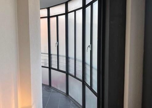 Das moderne Badezimmer verfügt über eine bodengleiche Dusche und hochwertige Armaturen. Ein verglaster Balkon / Wintergarten bietet zusätzlichen Wohn- oder Arbeitsraum.