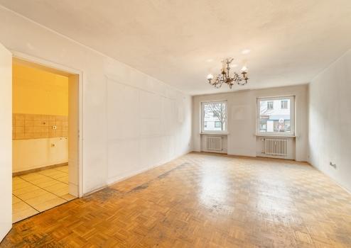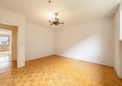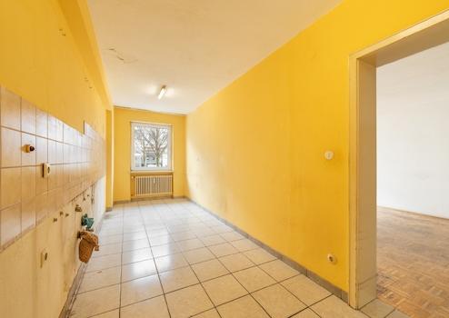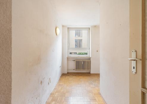 Küche und Badezimmer sind gefliest, während in den übrigen Räumen klassisches Stäbchenparkett für eine warme Wohnatmosphäre sorgt. Die Wohnung ist renovierungsbedürftig, bietet jedoch eine hervorragende Grundlage, um mit überschaubarem Aufwand ein individuelles und stilvolles Zuhause zu schaffen.