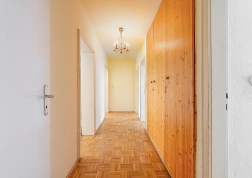 Bereits beim Betreten empfängt Sie ein weitläufiger Flur mit integriertem Einbauschrank, von dem aus alle Räume bequem erreichbar sind.