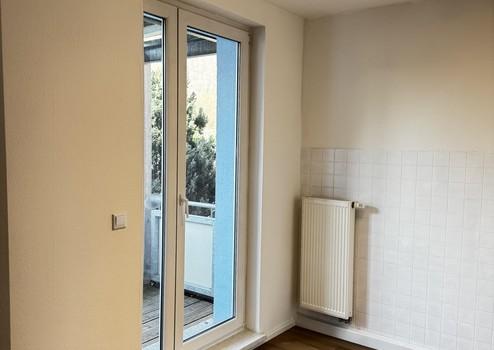 Das Herzstück der Wohnung ist die Wohnküche mit moderner Einbauküche. Von hier aus gelangen Sie auf den Balkon – ideal für entspannte Abende im Freien.