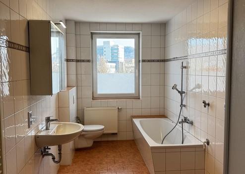 Das Tageslichtbad verfügt über eine Badewanne sowie einen Waschmaschinenanschluss. Hochwertige Bodenbeläge und die umfassende Modernisierung sorgen für ein zeitgemäßes Wohngefühl.