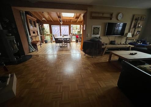 Ein besonderes Highlight ist der hochwertige, verglaste Holzanbau, der als lichtdurchfluteter Wohn- und Essbereich ganzjährig nutzbar ist und eine außergewöhnliche Wohnqualität bietet.