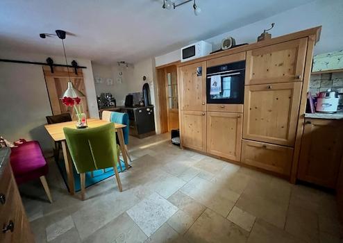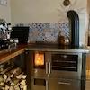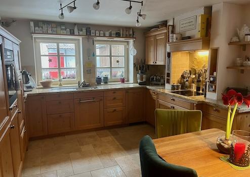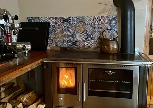 - Einbauküche mit wasserführendem Küchenofen, der aktiv in die Heizungsanlage einspeist