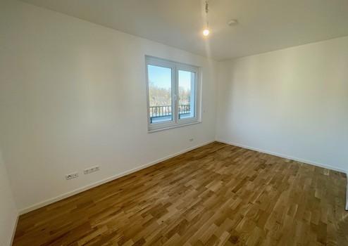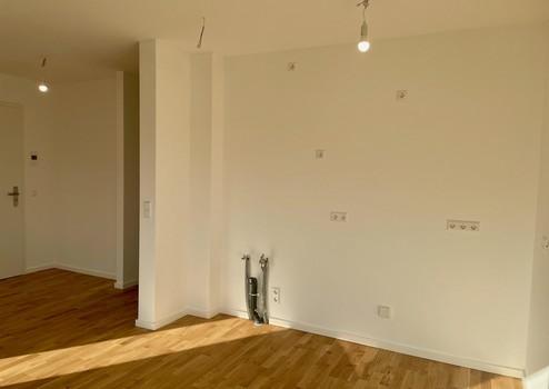 Herzstück der Wohnung ist der großzügige Wohn-Essbereich mit offener Küche. Die große Fensterfront sorgt für viel Tageslicht und schafft ein freundliches, einladendes Ambiente. Hier lassen sich ein gemütlicher Sofabereich, ein Esstisch sowie – je nach Bedarf – zusätzliche Wohnakzente problemlos unterbringen. Die offene Küche fügt sich harmonisch in den Raum ein und bietet ausreichend Platz für eine moderne Einbauküche mit allen notwendigen Geräten.