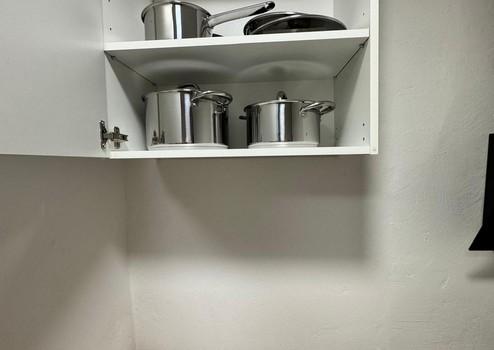 •Geschirr, Besteck, Töpfe, Pfannen und Alltagsutensilien vollständig vorhanden