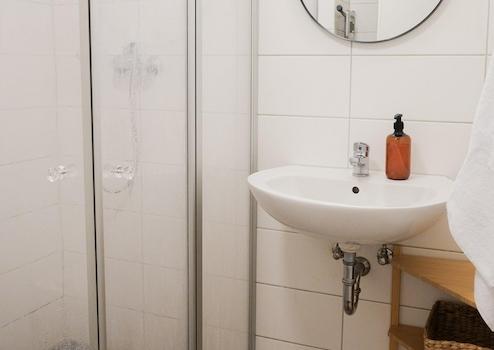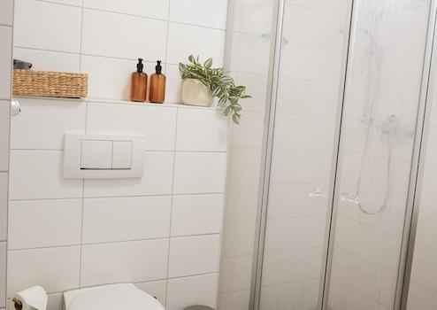 🛁 Bad mit Dusche, Handtüchern und Pflegeprodukten