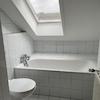 Der Bodenbelag der Wohnung besteht aus Stäbchenparkett und Fliesen im Badezimmer und in der Küche. Die Dachfenster sind gut isolierte Veluxfenster mit Wärmeschutzrollos.