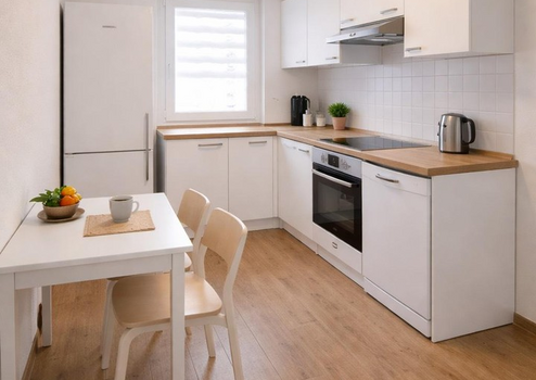 Die Wohnung überzeugt durch eine durchdachte Raumaufteilung, helle Zimmer und einen eigenen Balkon – ideal für Paare oder Familien, die Wert auf Wohnqualität legen. Im Hof des Hauses gibt es auch Platz zum Spielen.
