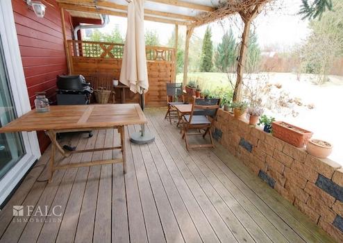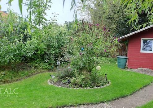 Der liebevoll angelegte Garten lädt zum Entspannen ein. Eine große, überdachte Terrasse bietet ausreichend Platz für gesellige Abende oder ruhige Stunden im Freien.
