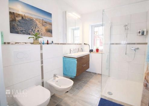Ein stilvoll ausgestattetes Badezimmer sowie ein Gästebad sorgen für zusätzlichen Wohnkomfort.