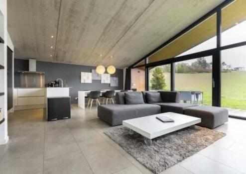 Beim Betreten dieser luxuriösen, ebenerdigen Villa werden Sie von der großen Glasfront auf der Rückseite mit fantastischem Blick auf die Skipiste überrascht. Über die geräumige Diele mit Garderobe und zusätzlichem Abstellraum gelangen Sie ins Wohnzimmer. Das großzügige Wohnzimmer verfügt über eine luxuriöse offene Küche sowie eine komfortable Sitz- und Essecke. Die Sitzecke ist mit einem stimmungsvollen Gaskamin und einem TV ausgestattet. Die griffl ose Küche besitzt eine Insel, Einbaugeräte (Bauknecht) und viel Stauraum. Durch die Schiebetür gelangen Sie auf die überdachte Terrasse mit unverbauter Aussicht und direkter Anbindung an die Skipiste.